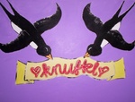 2005Dit is ontstaan als een idee: om een soort tattoo te maken met een heel lieve boodschap. Het werden zwaluwen die een parelmoer banier dragen waarop Knuffel staat.